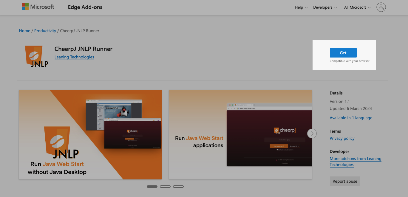 This tutorial will take you step by step on how to install the CheerpJ JNLP Runner extension for Edge.